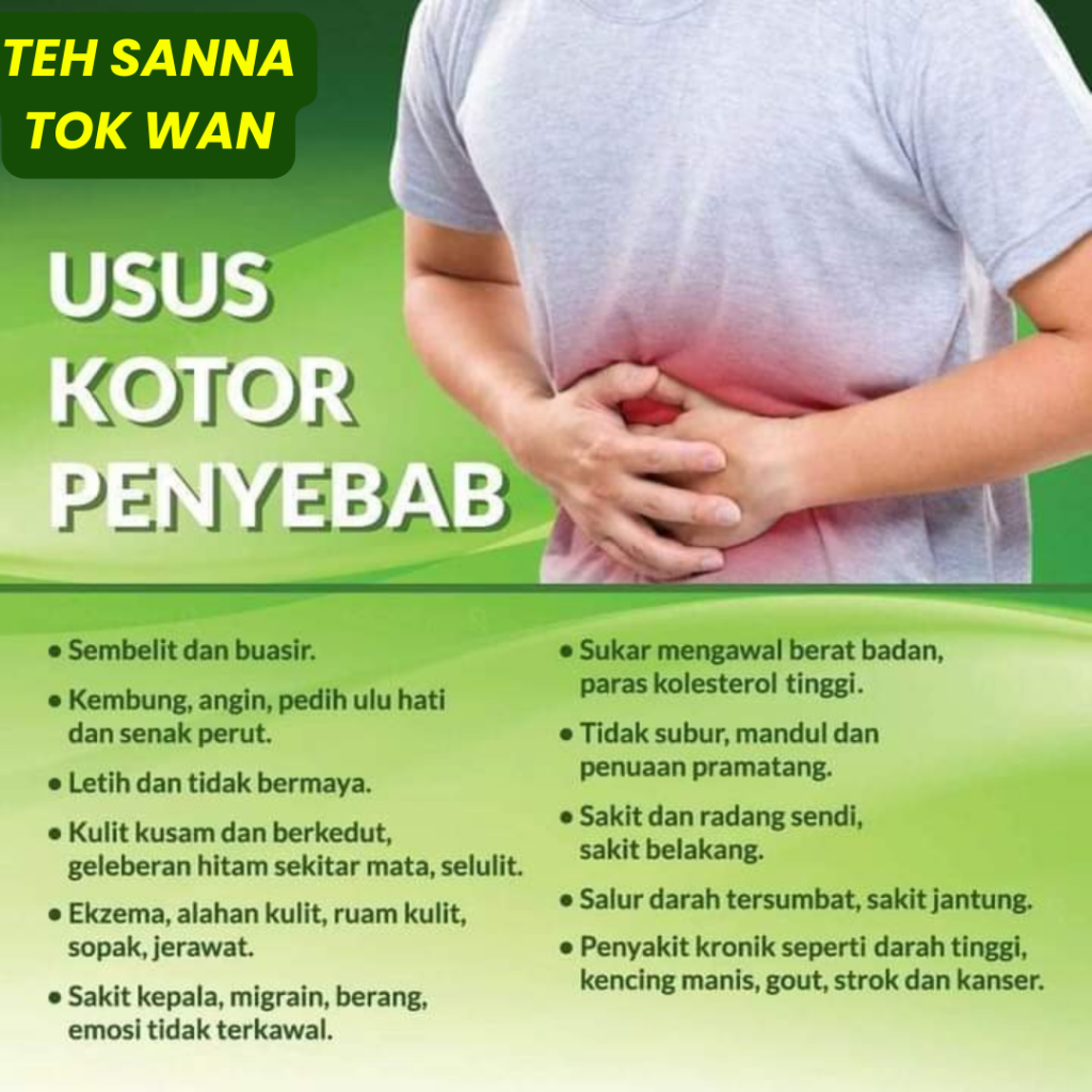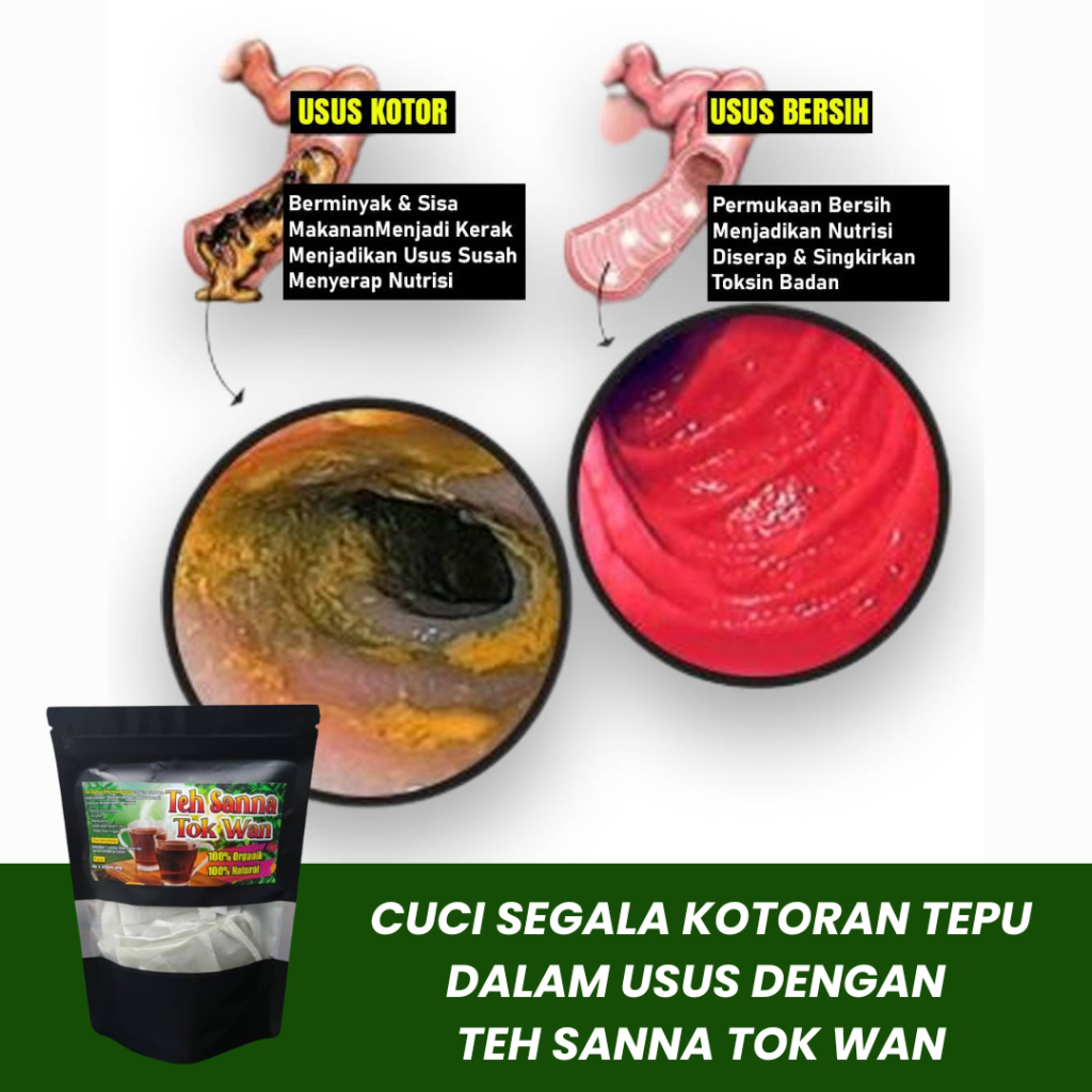Dengan amalkan teh sanna, kesanye akan singkir segala kotoran toksin dalam usus dan secara tak langsung singkirkan angin dalam badan