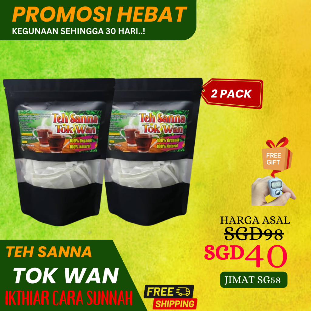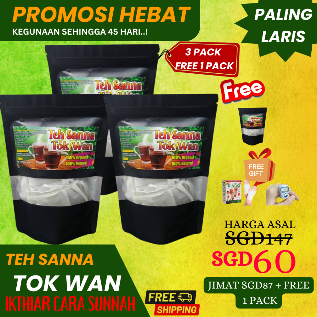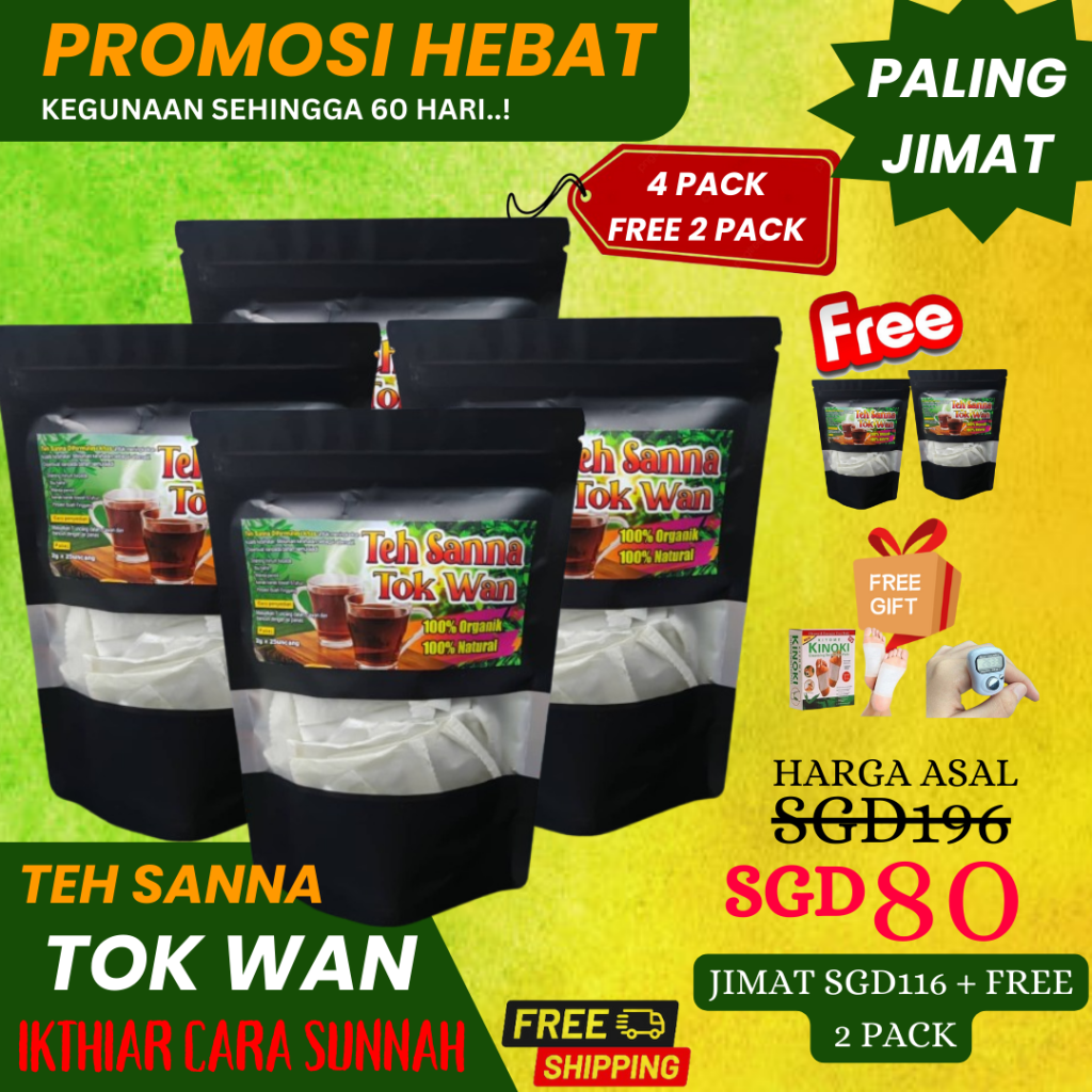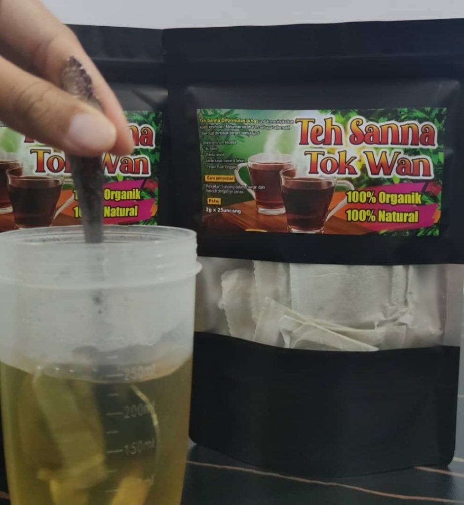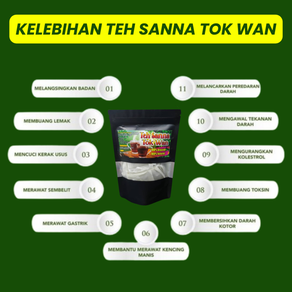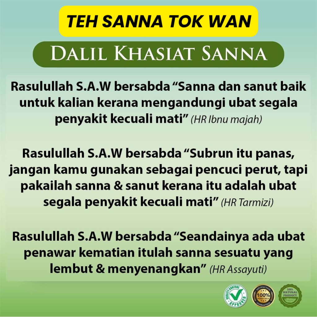 Teh sanna Tok Wan adalah dari bahan semulajadi 100% asli daun sanna dan tiada campuran serta bukan ubatan